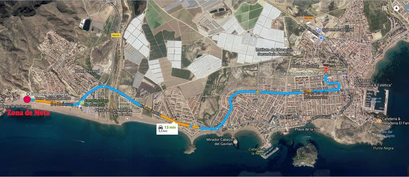 COMO LLEGAR DE LA ZONA DE META A LA ZONA DE DUCHAS (POLIDEPORTIVO MUNICIPAL BAHÍA DE PUERTO MAZARRÓN)